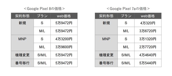 なお、Pixel 7aはさらに安いです。MNPなら最安で2万7720円、機種変更でも4万4640円で購入できます。性能は今でも高く、ほとんどの人はPixel 7aでも十分でしょう。記事執筆時点で在庫がある色はチャコールのみなので、狙っている人は早めの購入がオススメです。