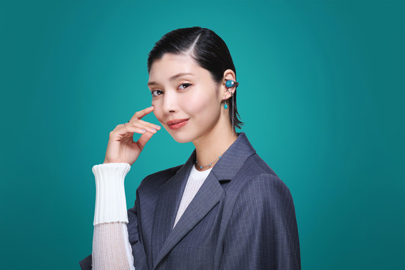 本製品はイヤリングのようなイヤーカフスタイルと、耳をふさがない開放型で周囲の音を確認しながら音楽や映像コンテンツを利用可能。柔軟に可動する独自の「フレキシブルアジャスト」機構で着脱しやすく、落下にしくい安定した装着感を提供するという。