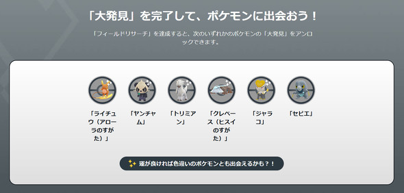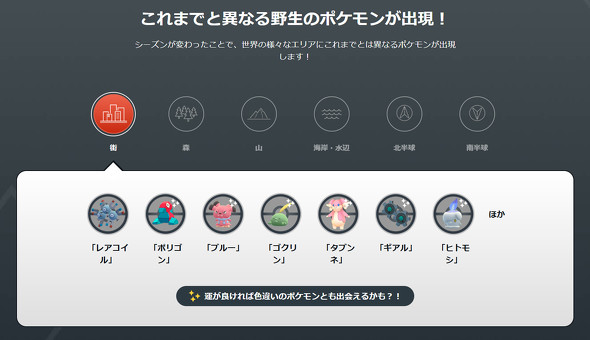 「ライチュウ(アローラのすがた)」など、いずれかのポケモンの「大発見」をアンロックできる「フィールドリサーチ」を実施。街や森、北半球&南半球では「レアコイル」「シキジカ(ふゆのすがた)」「シキジカ(なつのすがた)」など、これまでと異なる野生のポケモンなども出現する他、タマゴから「コダック」「クリムガン」なども登場する。