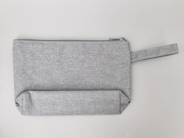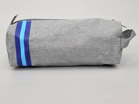 生地はツイード調のグレーのポリエステル製でガジェットポーチと同じだ。ぐるりとブルーラインが施されている。手に下げていればどのように持っていてもブルーラインが見えるので、ANA好きの人にアピールできそうだ。