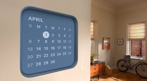 iPhoneやMacで提供している「ウィジェット」が、visionOSでは“spatial(空間化)”される。例えばカレンダーや時計のウィジェットをユーザーの空間の好きな場所に固定できる。サイズや色、奥行きをカスタマイズできる。