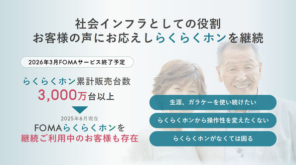 「らくらくスマートフォンも、自信を持って選択肢としてお伝えできるが、一方で、加齢による身体能力の低下などの理由から、どうしてもらくらくホンでないと使えないという、さまざまな事情を抱えた人がいらっしゃるのも事実」と正能氏は話す。そうしたユーザーの声に応え、らくらくホンを継続して投入する。