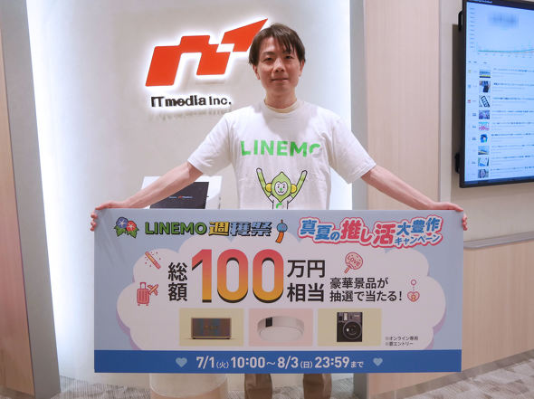 月替わりキャンペーンとして「LINEMO 週穫祭 真夏の推し活大豊作キャンペーン」を実施し、推し活に役立つ総額100万円分の賞品をプレゼントする。このキャンペーンはLINEMO以外のユーザーも対象としており、エントリーフォームから誰でも応募できる。期間は8月3日23時59分まで。