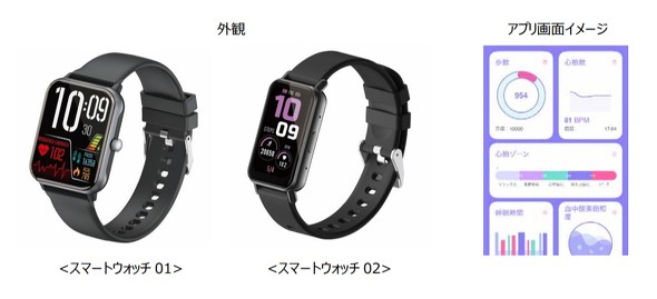 両モデルは、スマートウォッチの基本機能を備えているが、それぞれ異なるユーザーニーズに応える設計になっている。スマートウォッチ01は、時計や通知の視認性を重視した大型ディスプレイモデルで、スマートウォッチ02は、軽量で動きの妨げにならない装着感を意識した小型ディスプレイモデルとなっている。スマートウォッチを初めて使う層にも手に取りやすい価格帯に抑えたという。