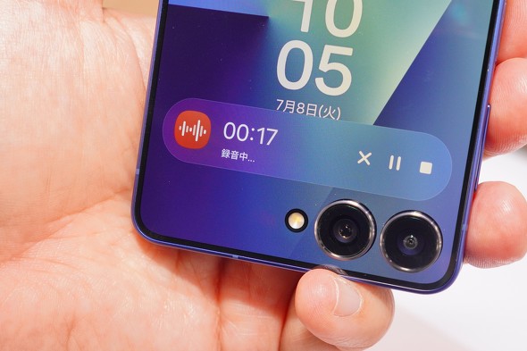 フリップ型のGalaxy Z Flipシリーズは、本体を閉じた状態で画質の高いメインカメラを使ってセルフィーを撮れることを売りにしていたが、Galaxy Z Flip7でも、その特徴は継承している。同モデルでは、セルフィー時に、どのレンズを見ればいいかが分かりやすいよう、カメラを切り替えた際に、そのレンズの周辺の色が変わる仕掛けも取り入れられている。