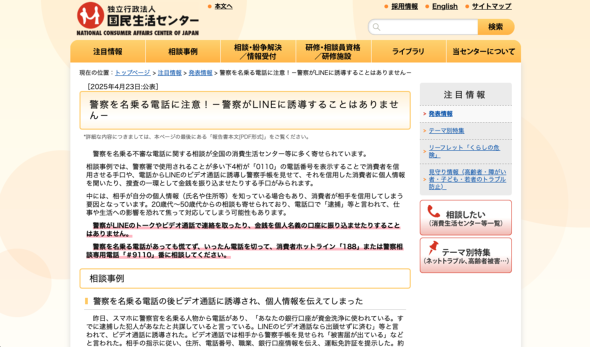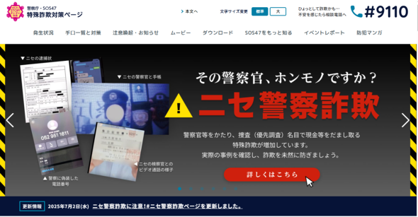 警察庁が公開している特殊詐欺対策ページの「ニセ警察詐欺に注意!」の記載によると、2025年3月における特殊詐欺の被害額、105.2億円のうち、65.4億円が“ニセ警察”詐欺だという。大前提として、現在かなり横行している手口だという認識を持っておこう。