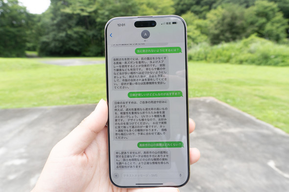試しに「テントのたたみ方」と送信してみたところ、20秒ほどで簡潔な手順が返ってきた。山でキャンプ道具の使い方に困ったときなど、実用的な場面で役立ちそうだ。