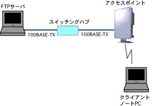 ZDNet Mobile&ZDNet Broadband合同企画第1弾 IEEE 802.11aがもたらすワイヤレスLANのイノベーション 実測で約18Mbps程度のスループットさて,それでは世界初の製品となったソニーのIEEE 802.11a無線LAN製品を見てみよう。アクセスポイントは「PCWA-A500」,カードは「PCWA-C500」となっており,ラインアップ全体として「Carrier Gete」という名称がつけられている。アクセスポイントのPCWA-A500は,ブリッジモードとルータモードを実装しており,PPPoEやNATにも対応しているため,ADSLやCATVなどブロードバンド回線に接続して利用することもできる。 筆者自身は,802.11aの策定以前から5GHzを利用した無線LANの高速化について関心を持ち,ウォッチしてきた。ようやく製品化されたものに出会えたということでは感慨深いものがある。米国ではこの秋の展示会に802.11a製品がいくつか出展されており,日本では少し遅れて来年初め頃の登場になるかと考えていたので,11月初めの登場は予想外に早かった,という印象だ。 ところが,使おうとして,さっそく壁にぶちあたってしまった。それはカードであるPCWA-C500に用意されていドライバが,Windows 2000 ProfessionalとWindows XP Home Editionのみの対応ということだ。製品のホームページによると「Windows Me対応ドライバは,2002年2月頃にダウンロードでの無償配布を予定」となっている。購入の際には注意が必要だろう(なお,本製品はそもそもバイオギアの製品群の位置付けであるため,ソニーのWebサイトではVAIO製品での対応しか記載していない)。 筆者自身は対応OSを搭載したノートPCをもっていなかったが,幸い知人の厚意でVAIOのノートPCを借り受けることができた。そこで,FTPサーバをネットワークに用意し,大きなサイズのファイル(約51MバイトのASFファイル)をダウンロードしてスループットを計測してみることにした。今回構築したネットワークはごくシンプルなものであるが,図のようになる。アクセスポイントの動作設定はブリッジモードである。