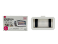 キャンドゥで販売中の「2WAYスマホホルダーホワイト」を紹介。設置と手持ち、縦/横置きどちらでも利用でき、柔軟な素材でスマートフォンの幅に合わせて調節できる。価格は各110円(税込み)。
