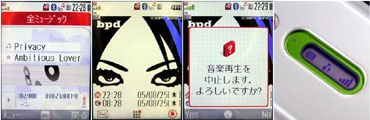 音楽を再生させた状態で終話キーを押すと、音楽を聴きながら各種操作が可能なバックグラウンド再生モードになる。この状態では当然ながら方向キーや決定キー、サイドキーを押してもボリューム調整や曲間移動はできない。端末を閉じた状態での操作もサイドキーには音楽関連機能の操作は割り当てられていない。