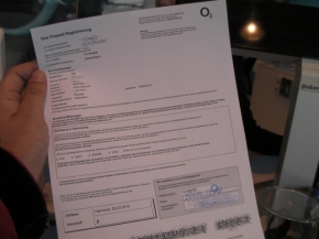 O2では、PCに接続してデータ通信専用に使えるUSBデータアダプタも同じプランで利用できるが(もちろん、通話はできない)、今回は、スマートフォンを使ったTwitterによる「CeBIT 2010 ライブリポート」も実施する予定だったのでSIMカードを購入した。購入の手続きも簡単で、クレジットカードとパスポートをカウンターに提示し、渡された申込書に氏名と生年月日を記入、最後に署名を入れて提出する。身分証明とクレジットカードが有効であることが確認できたら、カウンターの引き出しからプレイベイドSIMカードのパッケージを取り出して渡してくれる。これで契約の手続きは完了だ。