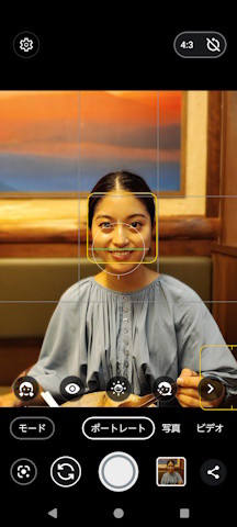 もちろん、人物を撮るときにもAIによるガイドが出る。「顔を明るくし、肌の色がきれいに見えるように撮影します」だそう。