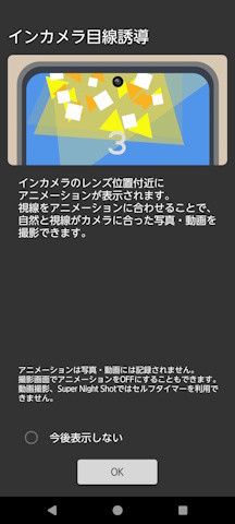で、arrowsにはこんなギミックがある。「インカメラ目線誘導」だ。