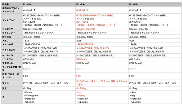 「Google Pixel 9a」は何が進化した? Pixel 9/8aとスペックを比較