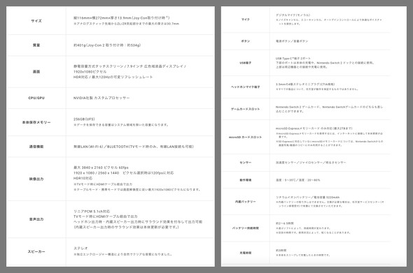 任天堂は、Nintendo Switch 2の詳細発表後、製品ページを公開し、スペックを明らかにした。