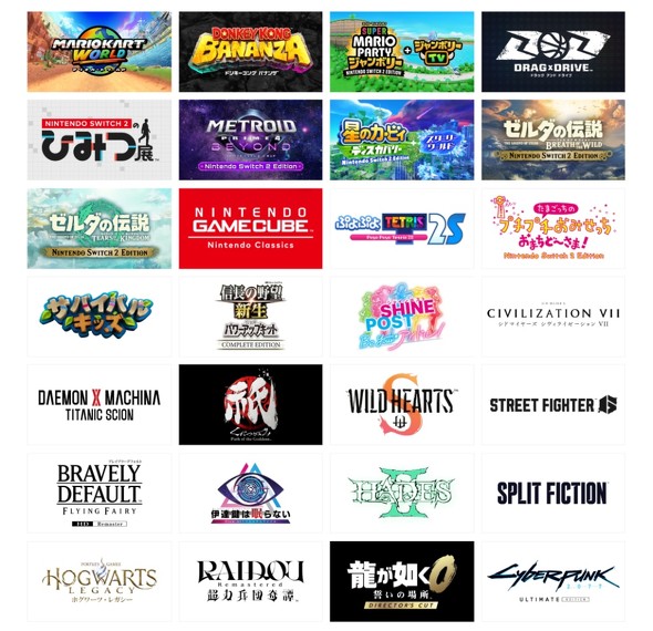 応募受付は既に終了しているが、任天堂は4月2日のNintendo Switch 2の詳細発表に合わせて、体験会当日にプレイ可能なソフトを公開した。「マリオカートワールド」「ドンキーコング バナンザ」「ひみつ展」「星のカービィ ディスカバリー」「ゼルダの伝説」など、Nintendo Switch 2に対応する新作タイトルが一覧に並んでいる。
