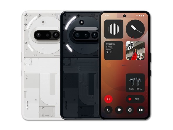 Nothing Japanは4月8日、スマートフォンの新製品「Phone (3a)」の日本での取り扱いを発表した。楽天モバイルが限定カラーを独占販売する。背面パネルを従来のアクリルから硬質なガラスに変更し、カメラが2眼から3眼に進化した。