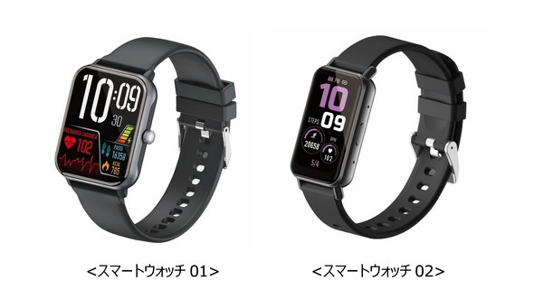 両モデルはスマートウォッチとしての基本機能を備えつつ、それぞれ異なるユーザーニーズに応じた設計となっている。スマートウォッチ01は、時計や通知の視認性を重視した大型ディスプレイモデルであり、スマートウォッチ02は、軽量で動きの妨げにならない装着感を意識した小型ディスプレイモデルとなっている。いずれもスマートウォッチ初心者でも手に取りやすい価格帯に設定されている。
