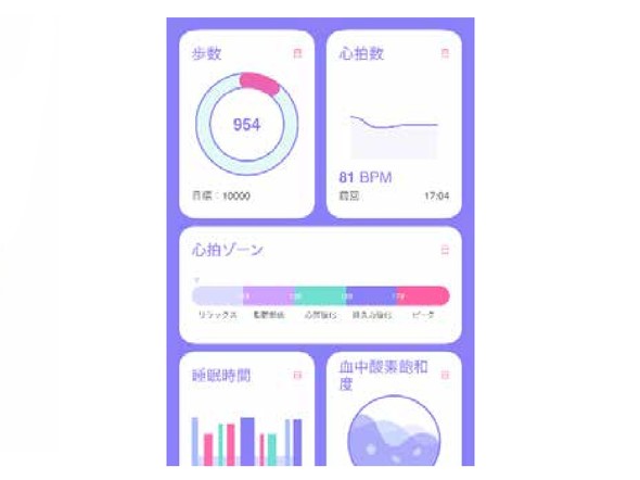 計測された健康データは、専用アプリを通じて「dヘルスケア」と連携することが可能で、日々の体調管理や生活習慣の見直しに活用できるという。