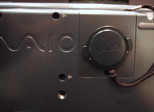 | 本体裏側には例によって「VAIO」の浮き彫りが。また三脚ねじ穴が装備されており,モバイル用に何らかの応用がきくかもしれない。レンズキャップの収納スペースも設けられている |