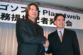 | エルゴソフト社長の襟川氏(左)とPlanetwebのCEOケン・スーフー氏(右) |