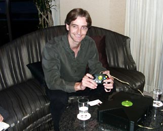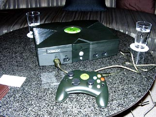 | インタビュー会場に置かれていたXboxの試作機。実動機かと思いきや,「チップがいくつか入っていないので動かない」とのこと |