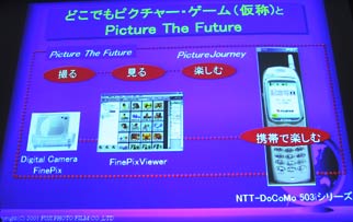 Picture The Futureは,同社のデジタルカメラFinePixシリーズを中心に,ビューワソフト,画像ネットサービスなどが一体となったデジタルイメージングシステムで,今年3月よりサービスが始まっている。PictureJourneyは,画像ネットサービスの中心となるサイトで,会員サイトと一般公開のコミュニティーサイトで構成されている。会員サイトでは,写真入りホームページやアルバム作成,画像添付メールの作成,携帯電話の待ち受け画面としてお気に入りの画像をダウンロードできるサービスなどを提供している。
