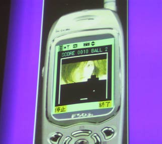 | ブロック崩しは,登録した画像を100個ほどのブロックに分割して,それを崩していくゲームだ。iアプリ対応機のバイブレーション機能が連動して,ボールを打ち返す時に,手に振動が感じられるところが面白い。 |