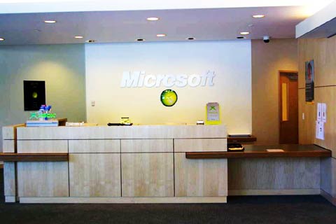 誰もいないように見えるが,1人だけ女性がいるMilleniumビルの受付。セキュリティに関しては,比較的おおらかな雰囲気だが,本当に見せられない場所は関係者も鍵がなくて入れないとか