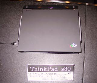 ThinkPad s30は,発売以来好調なセールスを記録しているThinkPad i Series s30の法人モデル。外装の変更と,OSにWindows 2000 Professionalを採用している点以外は,同じスペックとなっている。i Series s30ではピアノの表面のように映り込む輝きのミラージュブラックが特徴だったボディーカラーが,s30ではThinkPad伝統のつや消し塗装(フラットブラック)に変更された。