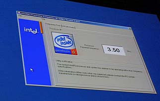 Otellini氏はさらに,デモシステムで3.5GHz動作のPentium 4マシンを動かして見せた。そして,Pentium 4はそのライフサイクルの中で10GHzまでクロック周波数が上昇させる見込みだという。