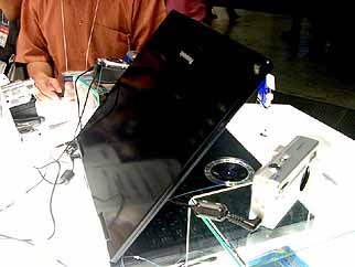 松下電器産業は,Windows XPがインストールされたノートPC「人」の新型を展示。ボディカラーをブラックに変更し,AV機器らしいイメージを強調している。光沢のあるブラックは,まるで「ThinkPad S30」のミラージュブラックのようだ。なお,松下によれば詳細なスペックや価格,発売日などは未定とのことだが,会場では実際に操作可能な状態で展示されている。