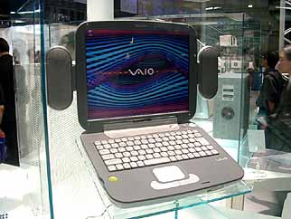 ソニーでは,13.3型液晶搭載ノートPC「バイオQR」のニューモデルを展示。ボディカラーが,アップルの「iBook」のような透き通るようなホワイトに変更されている。ただ,残念ながら,取っ手のようなギミックがなくなっており,もう,“パイプいす”と呼んだりはできなさそうだ……。