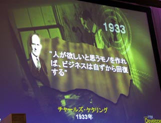 | 米IDFの本社幹部と同じくチャールズ・ケタリングの言葉を引用したトレーナー氏 |