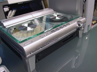 オーディオデッキ部は,ケンウッドが今年11月に発売したばかりのハイスペックなマイクロコンポ「Digital Avino SJ-9CDR」をベースにしている。外見は足の部分が木目調から本体上部と同じシルバーに変更された以外,SJ-9CDRとほぼ同じだ。ただ,PCとの連動機能のために中身は大幅に変更されている。