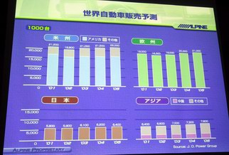 自動車販売台数の予測をみても,米国/欧州/日本/アジア諸国ともに毎年数十万台ずつ増加する右上がりの安定した需要が見込まれている。