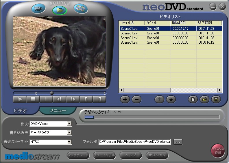 | 新たに添付されたneoDVDのソース選択画面。DVビデオカメラからHDDに映像を保存しながらダイレクトにDVD-Videoの作成が行えるだけでなく,バックアップ機能なども搭載されている |