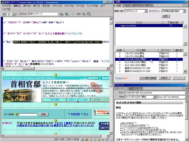 Webサイトもバリアフリーの時代だ。Webサイト診断ツール販売のソシオメディアは3月14日,Webサイトのバリアフリー度(アクセシビリティ)を診断/修正できるソフト「LIFT for Macromedia Dreamweaver」を発表した。同ソフトは,米UsableNetが昨年12月にリリースした製品を日本語化したもの。バリアフリーに関する各種規格に対応し,「優しいWebサイト作り」をサポートする。