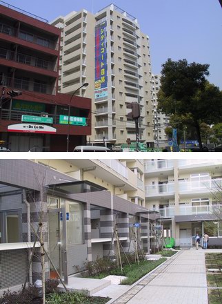 SOHO住宅は,JR山手線の目黒駅から徒歩1分という好立地に建設中の団地「シティコート目黒」(東京都品川区)内に設置。シティコート目黒では,国有地だった約1万6700平方メートルの敷地に計4棟の団地が建設されており,入居戸数は484戸となっている。このうちの11戸がSOHO住宅として用意された。