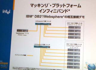 デモの内容は,McKinleyを搭載した複数のプラットフォームをスイッチドファブリック接続技術「InfiniBand」でクラスタリング接続し,IBM DB2でデータベース処理を行うというもの。MacDonald氏は,「大規模なエンタープライズ向けソリューションを64ビットで行う画期的なものだ」とアピールした。
