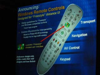 プレイバック操作やユーザーインタフェースの操作部,AV機器の操作に携帯電話ライクなキーパッドを装備。赤外線プロトコルを標準化し,すべてのFreestyle対応デバイスと互換性のあるリモコンを作ることが可能。具体的なボタン配置や実装,デザインはハードウェアベンダーに任されるようだが,リモコンにはWindowsボタンが用意され,ワンボタンでFreestyleのメニューを呼び出すことができる。
