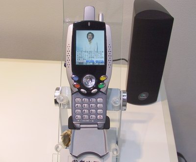 504iとともに注目を集めていたのが、地上デジタル放送を受信できる参考出展のテレビ付きケータイ。これは、昨年12月に都内で行われた地上デジタル放送の公開実験で使われたものと同じもので、端末が三菱電機製という点も前回と変わりない。