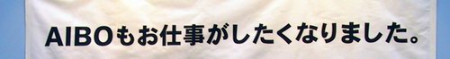 ケータイ一色の会場を、ZDNet NEWS的なネタを求めてフラフラと歩いていると、突然、「AIBOもお仕事がしたくなりました。」の文字が目に飛び込んできた。