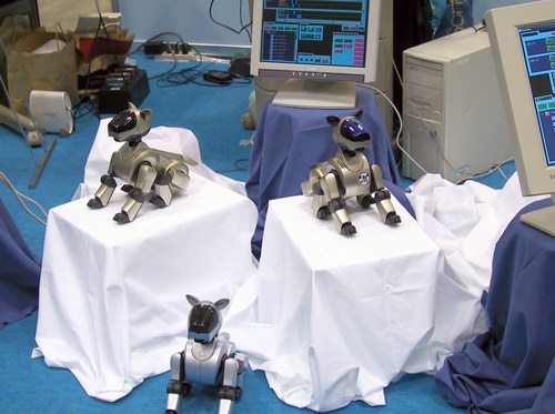 エンタテインメント系ペットロボットにもお仕事させてしまうとは、う〜む、さすがビジネスシヨウ。