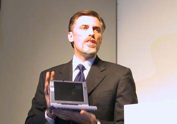 米Transmetaは5月29日、ユビキタスコンピューティングを実現する「Crusoe1000」構想を発表した。軽量かつ高速・長時間駆動が可能なモバイルPCの開発を目指す構想で、来日中の同社CEO・Matthew R. Perry氏が明らかにした。