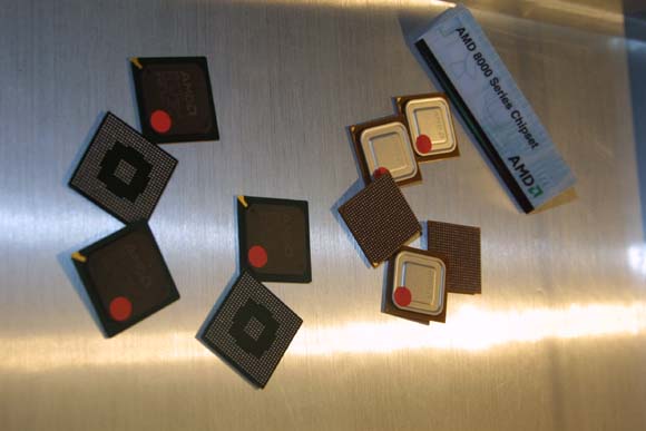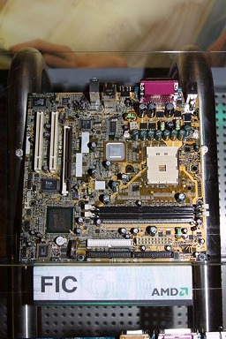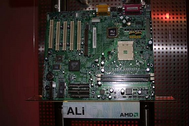 実際、今回サンプル展示されていたチップセットでは、Aliの「M1687」とSiSの「SiS755」、そしてVIAの「K8HTA」、およびnVIDIA製(名称不明)の4種類が確認できた。加えてAMDのAMD8000シリーズがあるので、都合5種類ものチップセットがあるわけだ。
