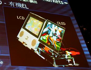 特に4番目の新規事業では、日本でも注目が集まっている次世代ディスプレイ「有機EL」への取り組みに力を入れている点を強調。有機ELに関する数多くの特許を保有する同社は、三洋電機との合弁会社「エスケイ・ディスプレイ」を昨年12月に設立。岐阜工場でアクティブマトリックス型有機ELの生産を開始している。