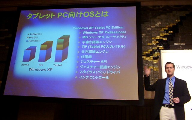 米Microsoftが「.NET時代のクライアントマシン」とアピールする「Tablet PC」の国内発売が今秋に決まった。Table PCは、OSにWindows XP Professionalのスーパーセットである「Windows XP Tablet PC Edition」を搭載。これは、Windows XP Professionalのフル機能に、手書き認識機能や音声認識機能、手書き用ユーティリティソフトなどを追加したものだ。なお、同OSはOEM提供のみで、店頭での一般販売は行われない。