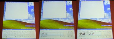 説明会では、手書き入力機能に関するデモンストレーションも行われた。Tablet PC Editionには、既存のメモ帳のように使える手書き認識ソフト「MSジャーナルユーティリティ」が標準で搭載されている。入力した文字は、「デジタルインク」として取り込まれ、そのデータを編集したり形式を変換したりできる。また、デジタルインクの文字を対象に検索を実行することも可能だ。