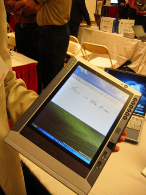 Tablet PCにはOffice XPを手書き対応にするアドオンパックや、メモ用紙に書き込んだ内容を管理するジャーナルなどのソフトが付属するが、サードパーティによる対応ソフトも今後増えてくるだろう。